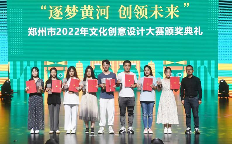 近日,郑州市2022年文化创意设计大赛的颁奖典礼在郑州大剧院隆重举行,并在此次颁奖典礼上揭晓了获奖作品。beat365艺术学院学生作品在本次大赛中喜获佳绩,共有4件设计作品获得“黄河记忆”——高校文博产品设计专项中的二等奖和三等奖,有42件设计作品获得优秀奖。赵越老师、马微老师与朱琦老师获得优秀指导老师奖。