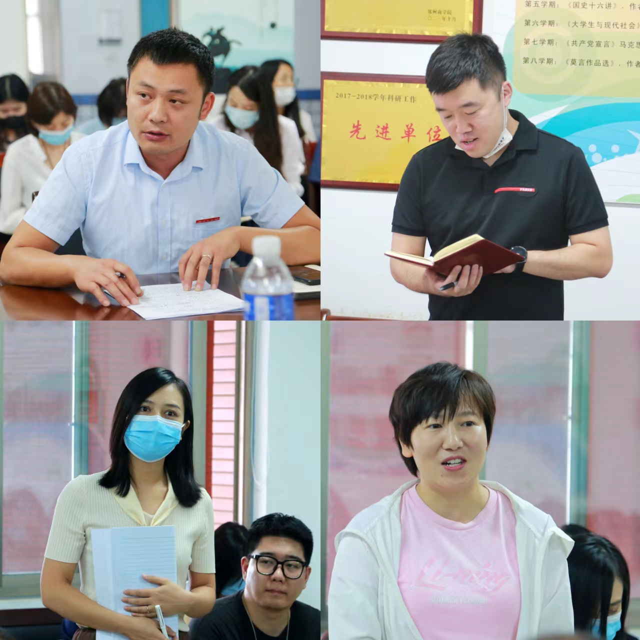 艺术学院教师朱华和魏晔、团委书记刘健、负责创新创业及就业工作的贺萌老师分别针对学院的科研工作、学生工作、就业工作分享了上午会议学习的心得感受。
