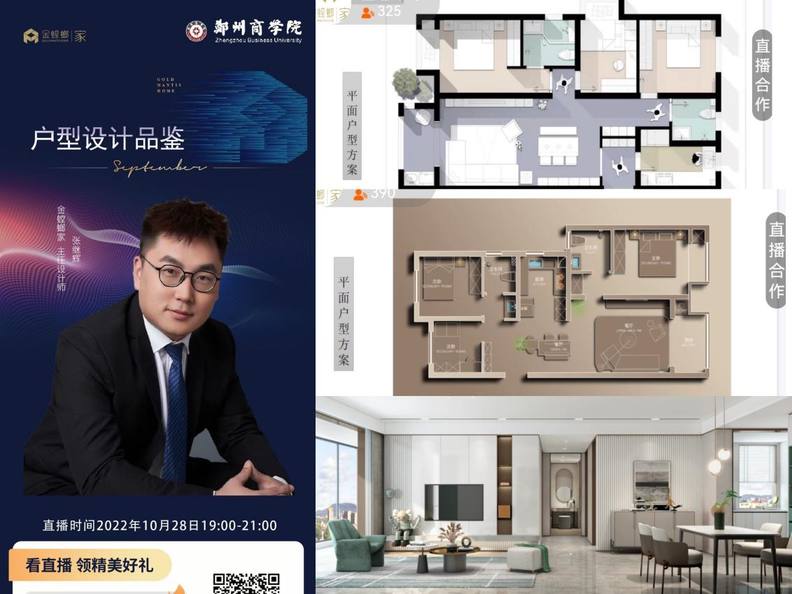活动结合我院毕业生就业实际需求,根据院部优势和专业特色,充分挖掘校友资源,先后邀请到省内知名企业专家为同学们做线上就业创业指导和经验分享。活动第一场邀请到金螳螂家建筑装饰有限公司主任设计师张继辉作为主讲嘉宾,为2019级环境设计专业的同学分享了他从业以来在家装户型实际领域的工作经验与心得。张老师生动展示了不同的室内设计风格,以富田九鼎公馆为典型案例,通过个人实际设计项目分享,让同学们了解如何将设计思路转变成设计方案,最终形成完美的设计作品。通过张老师的分享,对同学们在完善个人目标、提高专业水平方面有一定的帮助。并鼓励同学们,要加快角色转变,适应市场需求,希望更多的同学能更全面的了解设计行业,实现个人的价值。最后,同学们积极与老师互动交流,并将自己对设计手法的应用和设计风格把握的困惑与老师进行探讨,张老师给予了热情而详细的解答。