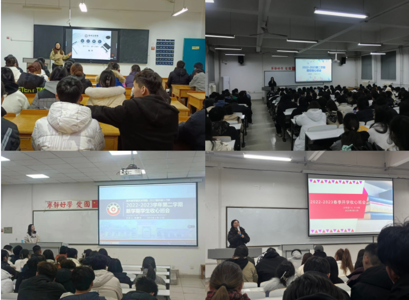接下来辅导员们根据各年级学生的特点针对性地开展班会,并要强调了四项内容:一是校园管理办法,本学期起启用校门智能门禁系统,学生严格按照要求执行请销假制度;二是坚持身体健康自查。入校后有发热、咳嗽、乏力、咽痛等症状时,要主动如实报告,及时就诊,如确诊新冠病毒感染,根据医生指导进行相应治疗,并及时向辅导员及学院报告。三是关注个人人身财产安全,要警惕传销陷阱、辨别招聘信息安全、防范求职面试骗局、谨防网络电信诈骗、提高交通安全意识,确保自身人身财产安全;四是宿舍安全卫生,严查夜不归宿,不使用大功率用电器,严禁携带易燃易爆物品进入宿舍,确保有一个安全整洁舒适的居住环境。