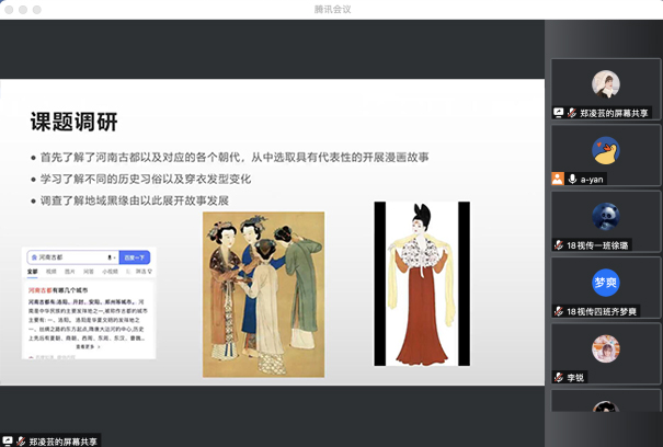 此次中期检查分不同专业依次开展,包括对学生完成的毕业设计内容及阶段性成果、课题进度情况、存在的问题与困难、下一步的推进计划等进行全方位的检查。各专业指导教师通过腾讯会议、钉钉会议等网络设备远程在线指导,对每位学生的毕业设计(论文)质量严格把关。每位学生通过PPT演讲展示环节,根据自己的选题进行介绍,从选题背景、课题简介、课题调研、设计定位、设计草图、设计方案等方面进行中期汇报。