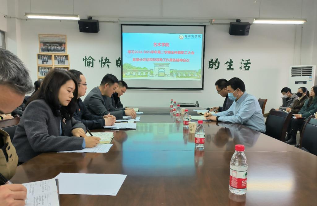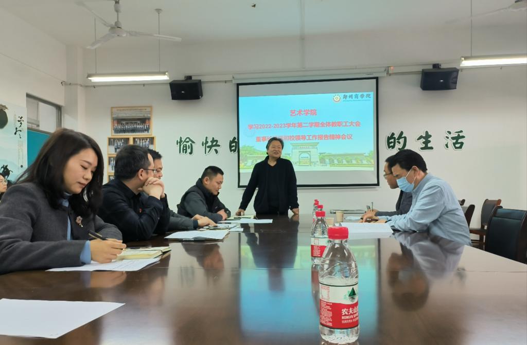 2月16日下午,艺术学院在会议室二楼学习全体教职工大会董事长讲话和校领导工作报告。校长助理张江涛、科研处处长刘志飞出席会议,艺术学院全体无课教师和辅导员参加了本次会议,会议由艺术学院院长李宪广主持。