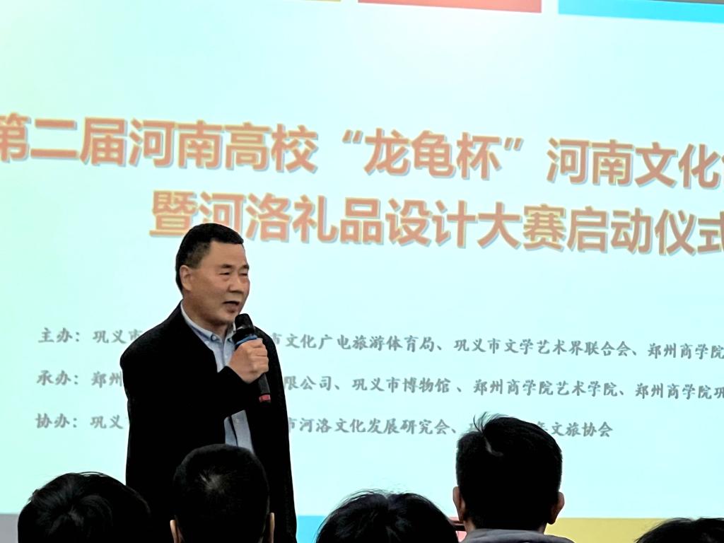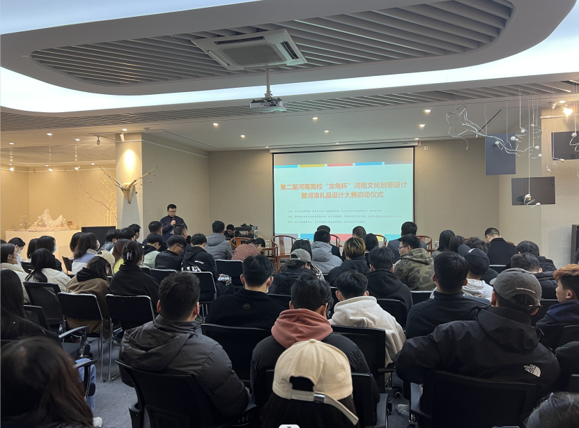 3月23日下午,第二届河南高校“龙龟杯”河南文化创意设计暨河洛礼品设计大赛启动仪式在艺术学院艺术实验中心成功举办。巩义市市委宣传部副部长孙中才,市委宣传部副部长、市融媒体中心主任席旭红,市文化广电旅游体育局党组书记、局长朱星理,市文联党组书记程相锋,市博物馆馆长白相国,郑州市作家协会理事、河洛文化研究会秘书长李晓娜,河洛文化研究会副会长、郑州图龙书龟文化传媒有限公司总经理韩红立等领导嘉宾出席仪式,beat365校长助理兼工会主席张江涛、党委宣传部部长兼新闻中心主任程文质和艺术学院院长李宪广、党委书记李帅及部分专家学者、师生代表参加了仪式。启动仪式由产品设计教研室主任张振中主持。