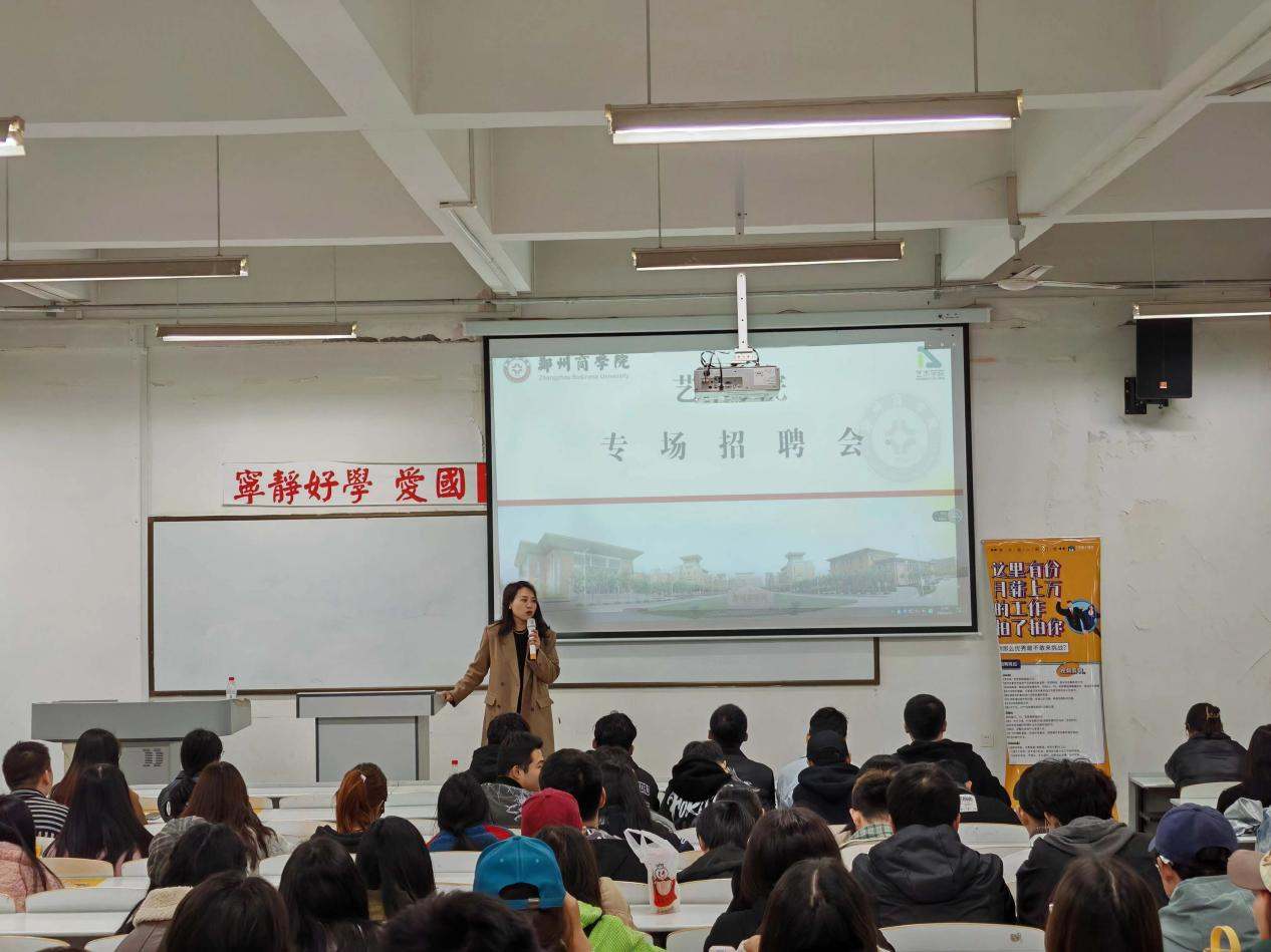 此次招聘会邀请到郑州宁美文化传媒有限公司,也是前期对该公司进行“访企拓岗活动”的进一步延伸和合作深入。招聘会伊始,首先由徐千淇院长对同学们进行了充分动员,并对公司概况进行了简要介绍。接下来由企业负责人详细介绍企业规模、发展状况:郑州宁美文化传媒有限公司,成立于2019年,是一家以“互联网直播”、“短视频社交软件运营”、“线上导流带货”为主营业务的流量型新媒体公司。随后进行企业展示、岗位宣讲,并针对岗位招聘条件、薪资待遇、福利补贴等情况,拿出“真金白银”吸引求职者。最后由2023届在职学生—19动画1班丁俊茹现身说法,分享自己在该公司的成长经历和成功经验。招聘会现场提供视频剪辑等岗位100余个供学生选择,活动共吸引到2023届、2024届毕业生200余名同学到现场求职。