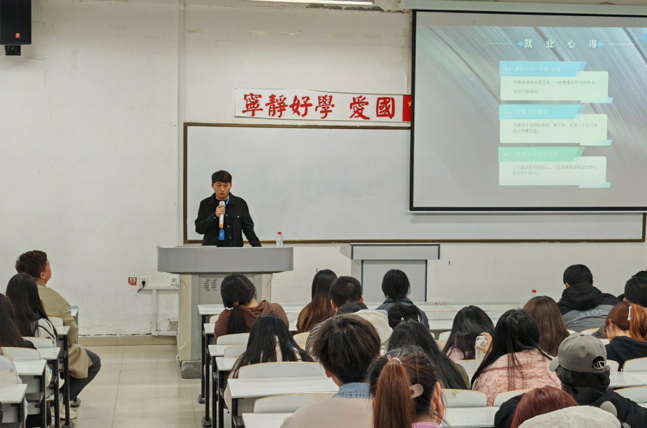 最后贺萌老师强调:希望同学们能从学长的分享中有所启发,找到自己的努力方向,珍惜在校时光,勤思考、常实践,磨炼心智、锤炼技能,一步步成长。本次校友讲坛,既加深了师生与母校的深厚情谊,又精准做实做细就业指导帮扶,进一步加快就业工作稳步推进,为实现“高质量就业工程”打好基础。