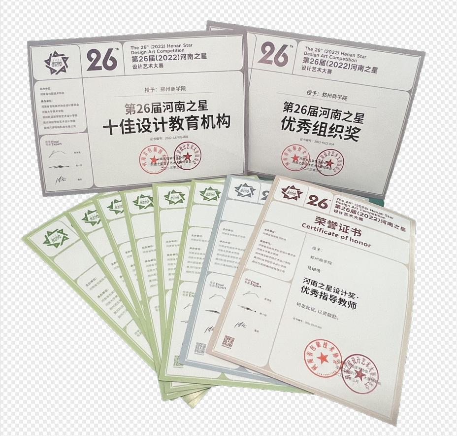 近日,由河南省包装技术协会主办的第26届“河南之星”设计艺术大赛颁奖典礼落下帷幕。beat365唯一官网师生再获佳绩,教师组获:金奖1项,银奖5项,铜奖3项,学生组获:金奖1项,银奖1项,铜奖5项。并获优秀组织奖与十佳设计教育机构称号。