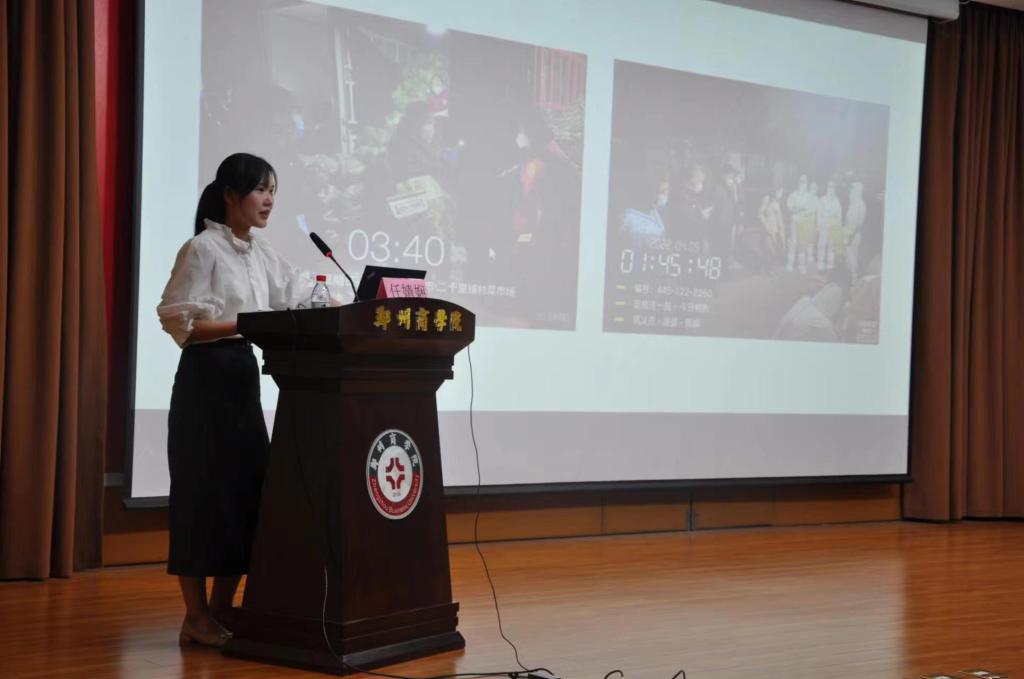 活动伊始,贺萌老师代表全体师生对优秀校友任婧娴的到来表示热烈欢迎,并向与会人员简要介绍了任婧娴的工作经历及个人成就。任婧娴校友首先表达了对母校与老师的感恩之情,接下来以“砥砺初心·筑梦基层”为主题,结合亲身经历分享工作求索之旅,带领同学们感受深耕基层的收获和乐趣。她用朴实的语言、感人的事迹深深地感染了与会人员,并号召同学们在未来道路上继续发挥“勤俭 朴实 自力 更生”的校训精神,坚持以兴趣为导向,面对挫折不言弃,永远保持对工作的积极态度和对自己事业的无限热情。