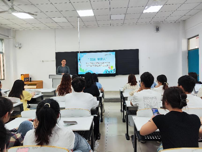 最后,院长对本次考研经验分享会进行了总结与展望。他指出,考研虽然艰苦,但坚持就有收获,考研道路上最大的敌人就是自己,要持之以恒,坚持学习,战胜自己。院长表示,学院为考研学子准备了若干大教室,专门用作暑期留校学生的复习教室,希望学子们能够在舒适的环境中,一战上岸。