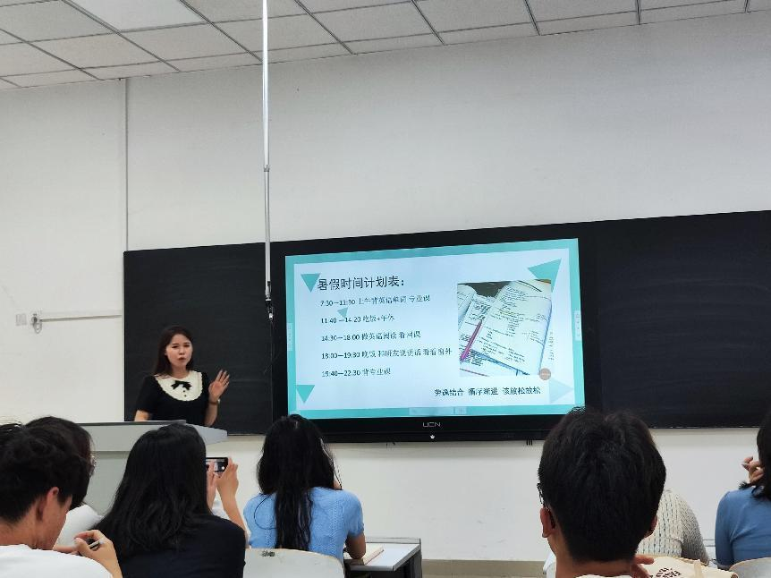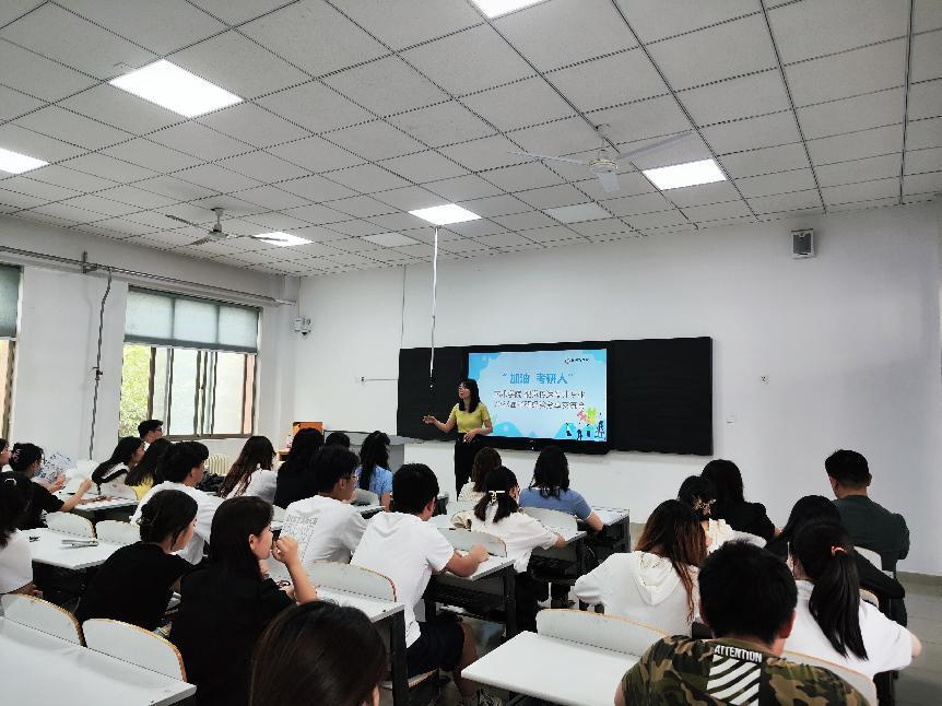 接下来,四名高分学生依次进行了分享。王明阳同学考研英语取得了81分的好成绩,他着重对考研英语的复习与规划进行了讲解,并且毫无保留的分享了他复习英语的过程,还分享了大量有针对性的学习资料。他认为拿下英语最关键的是拿下单词。王倩茹同学以381分的优异成绩成功上岸洛阳师范学院,她分享了专业跨考的经验,并且以风趣幽默的风格分享了很多备考的资源平台,并且鼓励大家一定要坚持学习,坚持就是胜利。袁海铭同学考研成绩389分,他按照时间顺序很细致的讲解了每个不同时间段该如何复习、怎么复习,使同学们对考研复习的规划有了更加清晰的认知。李琪琛同学以优异的成绩考进了中原工学院,她对院校相关的资料、考情、历年真题等进行详尽的分享,她还鼓励同学们一定要把心态调整好,要相信自己一定能够成功上岸。