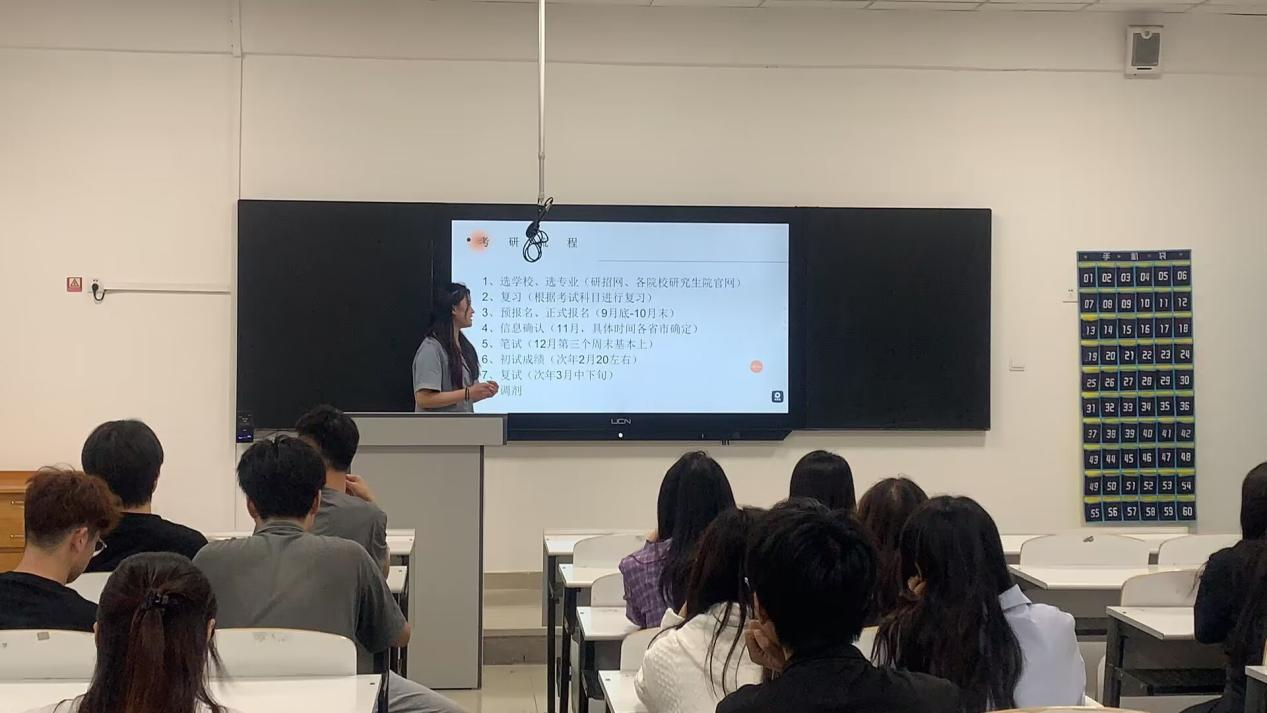 最后,徐千淇副院长总结发言,鼓励大家向优秀的学姐学习,建议大家根据自身实际情况制定好计划,通过脚踏实地的学习准备考上理想的学校。考研经验分享会是我院的传统活动,旨在通过同辈间的对话与切磋,让同学们获得有价值的考研资讯,提升同学们的备考能力。