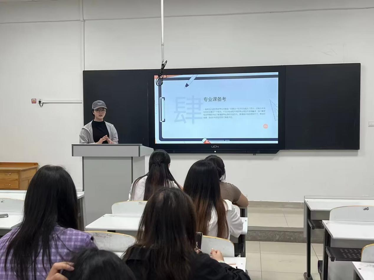 学姐们结合自身备考经历,分别从考研信息搜集、院校专业选择、公共课、专业课的复习方法和技巧、考研资料获取途径、考研心态调整、复试、调剂注意事项、平时生活的安排、导师的选择等方面进行详细的讲解。此外,在复习过程中可以寻找一些志同道合的、可以相互监督的同学一起学习,但切记不可相互盲目攀比学习进度。学姐还鼓励同学们坚定目标,不畏困难,用耐心、恒心、奋进之心面对挑战。
