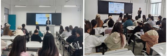 大会伊始,丁雯菲老师结合当前的就业形势分析了考研的必要性。随后,她建议同学们在备考过程中多与已经上岸的学长、学姐交流经验,了解报考专业,解决信息闭塞的问题。接着,她叮嘱同学们注意考研时间分配、学习计划安排、证书、专利及作品集积累,并把每一个时间节点需要注意的事项详尽提炼总结,使同学们更好的把握每一个重要复习时刻。