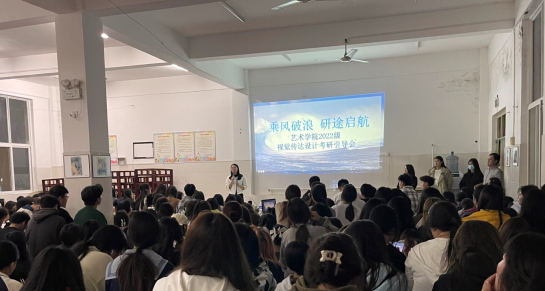 为进一步提升艺术学院学风建设,营造浓郁学习氛围,稳步提升人才培养质量。2023年10月25日17:30艺术学院李宪广院长带领李静老师前往艺术学院写生基地,组织大二学生开展“乘风破浪,研途启航”考研引导会。充分调动2022级视觉传达设计专业考研学生的学习热情,引导学生尽早进入考研备考状态,艺术学院写生课程教师和学生312人参加本次活动。