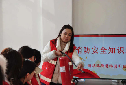 活动伊始,青年志愿者在社区门口领取红马甲,锦园社区负责人对志愿者的到来表示热烈的欢迎。随后由社区工作人员讲解本次社区实践志愿服务的主要内容,并为大家普及消防安全、垃圾分类等知识,教大家如何使用灭火器,其中提到使用干粉灭火器的小窍门:提 拔、喷、扫,这4个字对应的分别是灭火器4个部位以及正确使用灭火器的步骤,按照这个步骤就可以顺利使用灭火器。讲解结束后,志愿者们进行详细分工,相互配合,积极完成自己的任务。