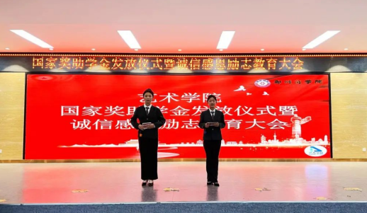 百年大计,教育为本。为践行资助育人理念,培养学生诚信感恩意识,营造自强不息、奋发图强的氛围,激励学生勤奋学习、努力进取,在德、智、体、美、劳等方面全面发展。艺术学院于11月29日晚开展国家奖助学金发放仪式暨诚信感恩励志教育大会,参加本次会议的有艺术学院党委书记李帅、团委书记殷晴波、辅导员老师代表及部分学生代表。