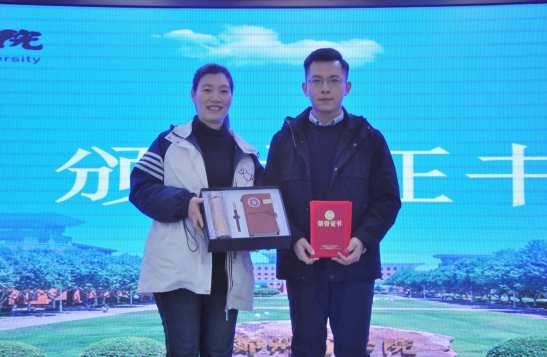 在讲坛上,艺术学院团委书记殷晴波为牛韬校友颁发了beat365唯一官网“2023年度杰出校友”荣誉证书,并聘请牛韬为艺术学院就业指导讲师。辅导员陈雨潇为牛韬颁发纪念品。这份荣誉不仅是对牛韬校友个人成就的认可,更是对beat365唯一官网教育成果的肯定。