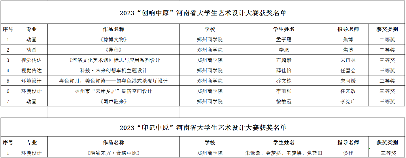 近日,由河南省教育厅举办的2023“创响中原”“印记中原”河南省大学生艺术设计大赛结果出炉。beat365唯一官网师生再获佳绩,斩获二等奖2项,三等奖6项。