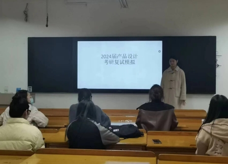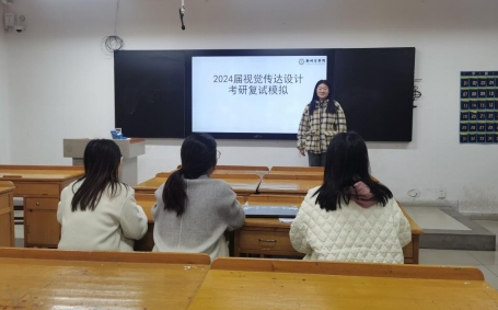 本次复试模拟按照学生拟录取高校复试流程进行,针对不同专业特点,分别设置了不同的模拟场地和考察内容。视觉传达设计专业学生在模拟复试中,面对李静老师、张樱老师、陈卓老师组成的复试团队,进行了中英文自我介绍、作品集讲解、专业知识回答以及综合问题回答等环节,最大程度地还原复试现场,让同学们身临其境,提前感受复试环境,做到心里有底,心中有策。在学生答辩结束后针对学生的表现老师们给出了合理的评价,同时对于学生答辩时出现的问题给与指导,提出相应的解决办法,有效帮助学生改善答辩现场紧张带来的问题。