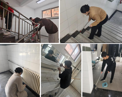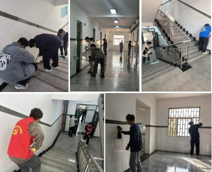 打扫过程中,师生员工齐行动,手持劳动工具从打扫卫生间到拖洗地面,不放过任何卫生死角。在大家的通力合作下,宿舍楼内干净整洁无异味,地面无污渍、无纸屑、无杂物,楼梯、墙面洁净,环境焕然一新。