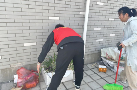 活动伊始,志愿者们在老师的带领下前往新华路街道桐和社区进行志愿活动,帮助水泥厂家属院清理楼道杂物。整个劳动过程中,青年志愿者明确分工,对楼道内部、道路两旁、单元楼附近等地点的垃圾进行清理,社区环境井然有序、焕然一新,志愿者们齐心协力为社区营造整洁优美安全的生活环境。