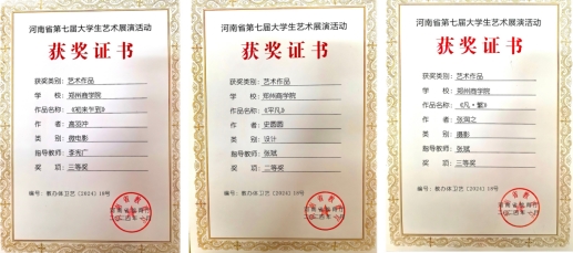 在此次展演活动中,艺术学院学子荣获三项奖项,视觉传达设计专业学生史圆圆荣获二等奖,张润芝荣获三等奖,动画专业学生高羽冲荣获三等奖。
