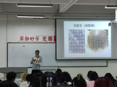程向阳老师介绍中国书法是一门源远流长的艺术形式,它不仅是汉字书写的技艺,更是一种独特的文化表达。程老师见解独到、博学多识,在讲座中,他从商代中后期出现的甲骨文和金文、魏晋南北朝时期书法的演变完善、隋唐时期书法的巅峰、宋元明清时期书法的继承发展等几个方面进行了详细讲解。