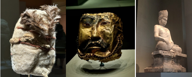 在展览现场,教师们被一系列精美的展品深深吸引。距今约4000年的新疆小河墓地出土的毡帽、战国至南北朝时期的黄金面具等文物,让他们感受到了古代文明的独特魅力。同时,哈佛大学带来的数字艺术作品《数字洛阳》《永宁绝响》,以及青海夏琼寺的“坛城沙画”等特别项目,也让他们领略到了科技与艺术融合的创新魅力。