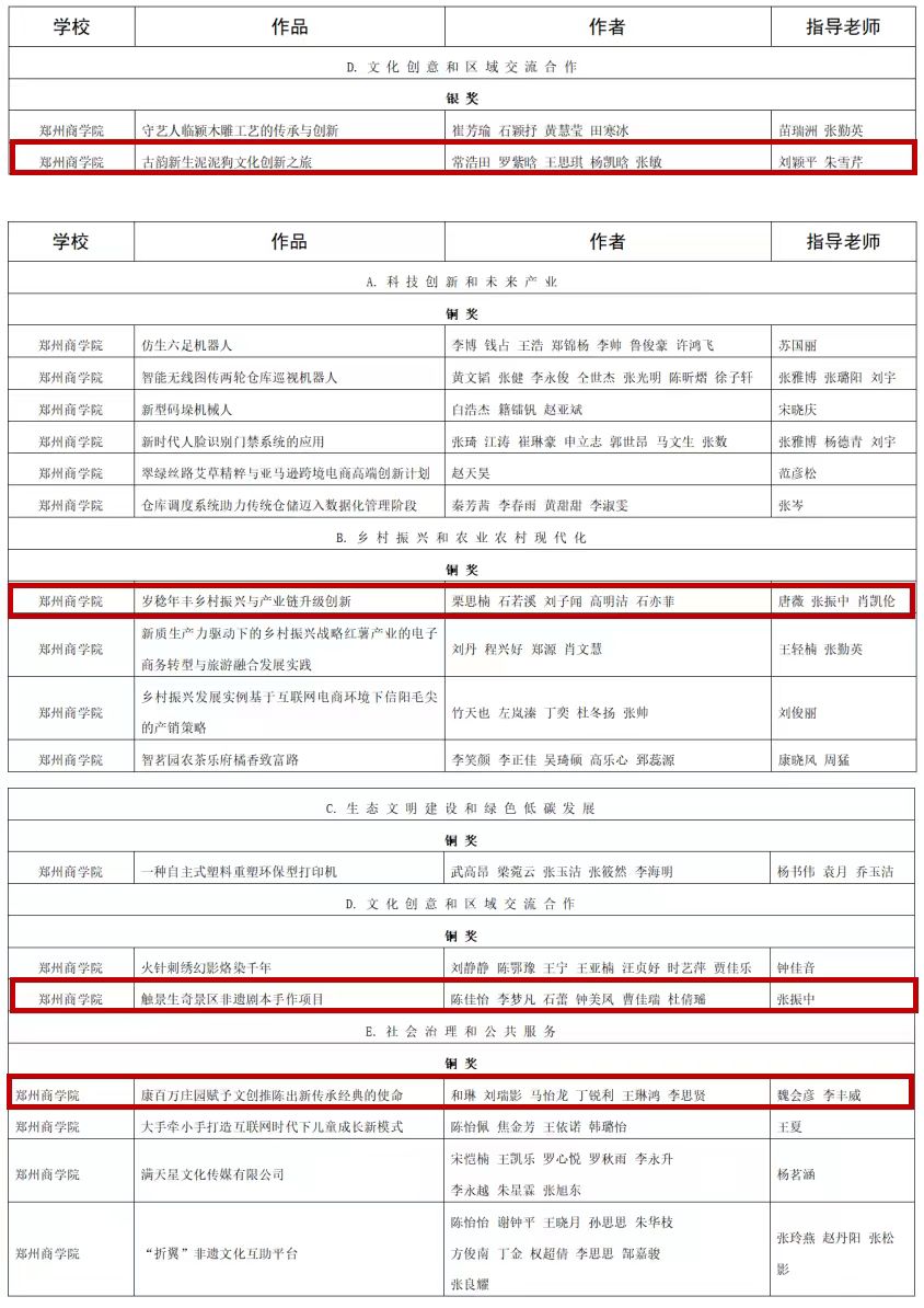本次“挑战杯”大学生创业计划竞赛共设五大类竞赛项目,涵盖科技创新、乡村振兴、生态文明建设、文化创意和社会治理等多个领域。经过激烈角逐,艺术学院选送的多个作品脱颖而出,共获得银奖1项、铜奖3项,展现了学院师生在创新创业方面的卓越实力。