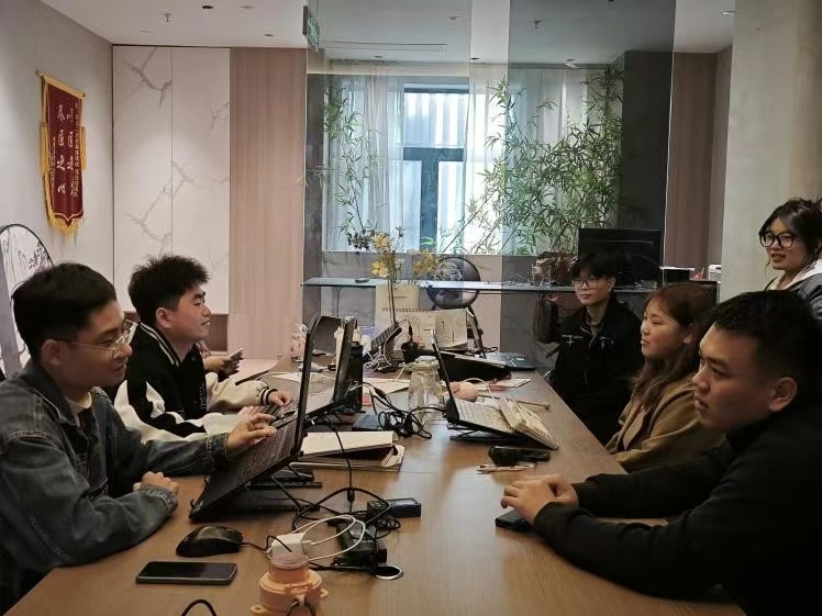 赵天龙和刘亚欣与公司负责人进行了深入的交流,了解了公司的业务范围、企业文化和发展规划。在交谈中,他们重点询问了目前在公司实习的同学们的工作情况。同学们分享了各自的实习经历,表示通过实习不仅提升了自己的专业技能,还增强了团队合作和沟通协调能力。公司负责人对艺术学院学生的综合素质表示赞赏,并介绍了公司的招聘需求和未来的用人计划。