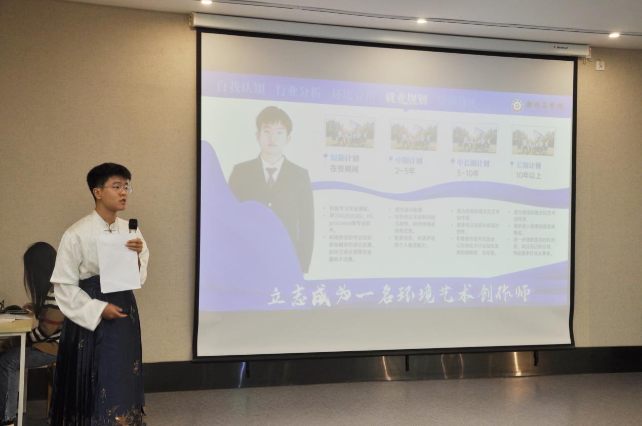 比赛共分为两个阶段展开。在第一阶段中,参赛选手们依次登台,他们怀揣着对未来的无限憧憬,从自我认知、职业认知、行业分析、环境分析、计划实施、评估与调整等多个维度出发,结合自身的专业背景与个人特点,对未来的职业发展路径进行了全面而细致的规划。有的选手分享了自己对环境艺术的深厚兴趣与执着追求,回顾了中学时期受到的艺术启迪,深入剖析了个人优势与不足,同时紧密结合行业发展趋势,提出了切实可行的职业发展计划;有的则展现了对产品创新与设计的热情,介绍了自己在校园内取得的优异成绩和丰富的实践经验,以此为基础规划了自己的短期、中期和长期职业目标;还有的选手以新中式设计为己任,回顾了自己与古建筑结缘的历程,通过对当前环境设计行业现状的深入分析与对传统文化发展趋势的敏锐洞察,确定了自己的职业定位,并分阶段规划了未来的职业生涯。