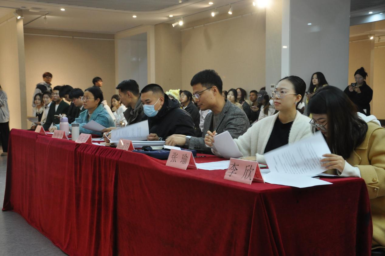 艺术学院辅导员李欣、张瑜、扈淦召、赵天龙、周俊良、周奕菲担任大赛评委,此次大赛由扈淦召老师担任主持。活动在扈老师的热情开场中拉开帷幕,他首先对到场的嘉宾表示了诚挚的欢迎,并详细介绍了比赛的规则和注意事项。