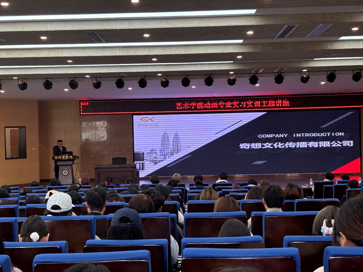为了进一步深化校企合作,落实学校人才培养方案,促进学生高质量就业,2024年11月17日,艺术学院动画专业携手奇想文化传播有限公司与郑州读书阁数字科技有限公司,在自力楼报告厅共同举办了一场别开生面的实习实训讲座。