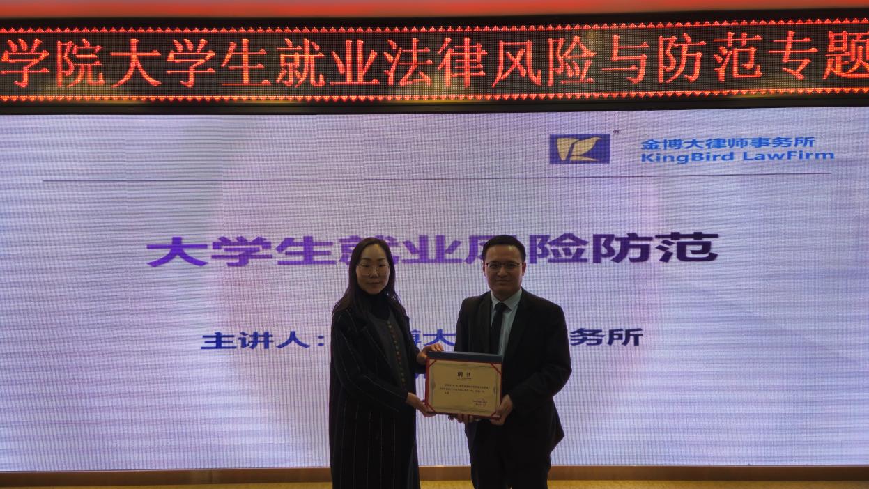 讲座结束后,曹丹丹老师代表艺术学院为孙凯律师颁发了就业指导讲师的聘书,并对他的精彩讲座表示衷心感谢。同学们纷纷表示,通过此次讲座,他们对就业过程中的法律风险有了更加深刻的认识,也学会了如何运用法律武器来保护自己。