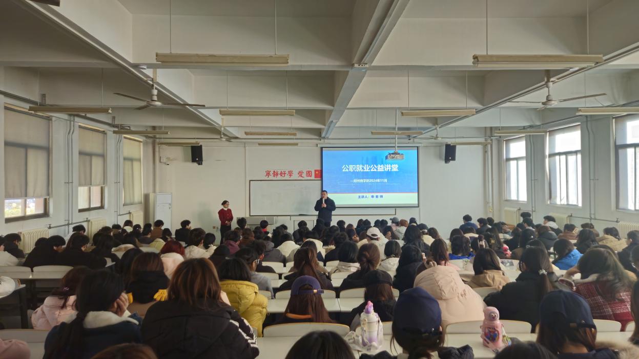 2024年11月27日,艺术学院在艺术楼122教室举办了公职就业公益讲堂,此次活动旨在帮助同学们更好地了解公职备考要点,提升就业竞争力。本次活动特别邀请了公职考试辅导专家申老师作为主讲嘉宾,由艺术学院就业专员赵天龙老师主持。