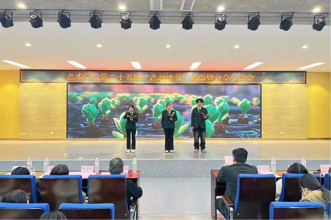立冬之时,霜华渐染,天地敛藏,书香韵绵。为进一步落实《2024-2025学年书香校园阅读经典工程实施方案》,持续推进学校“三大教育 两大工程”建设,推动书香校园阅读经典工程进一步发展。艺术学院于11月28日晚在自力楼三楼报告厅开展第二十五期“艺”起读书表彰暨分享交流会。艺术学院党委书记李帅、团委书记殷晴波、辅导员老师和学生代表参与了本次活动。