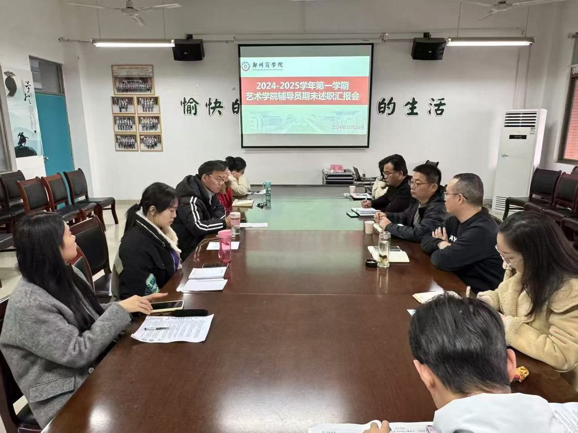 为深进一步加强辅导员队伍建设,提升辅导员工作实效和育人水平,艺术学院于12月20日成功召开了2024-2025学年第一学期辅导员期末述职汇报会。艺术学院党委书记李帅、学务处副处长兼生辅科科长李洪洋、团委书记殷晴波、宿管科李胜强老师以及全体辅导员参加了会议。会上,各位辅导员围绕学生思想理论教育和价值引领、党团和班级建设、学风建设、心理健康教育、就业指导、日常管理工作、安全稳定等多个方面,详细汇报了本学期的工作完成情况。他们不仅分享了工作中的创新举措和成功经验,还深刻反思了存在的问题和不足,并提出了切实可行的改进措施和未来工作思路。