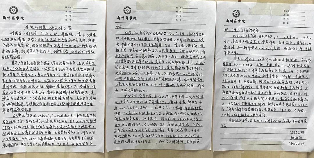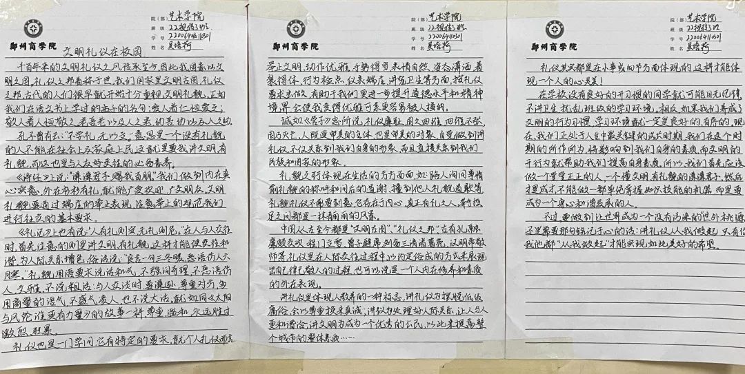 通过此次征文活动,提升了我院学生自我文化素养,增强学生对礼仪文明的认知,为参与者提供了展示文学才艺的平台,希望同学们在今后的生活中,提高自我的文明素质,共同构建文明礼仪校园。