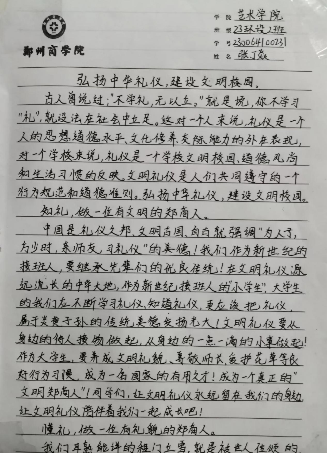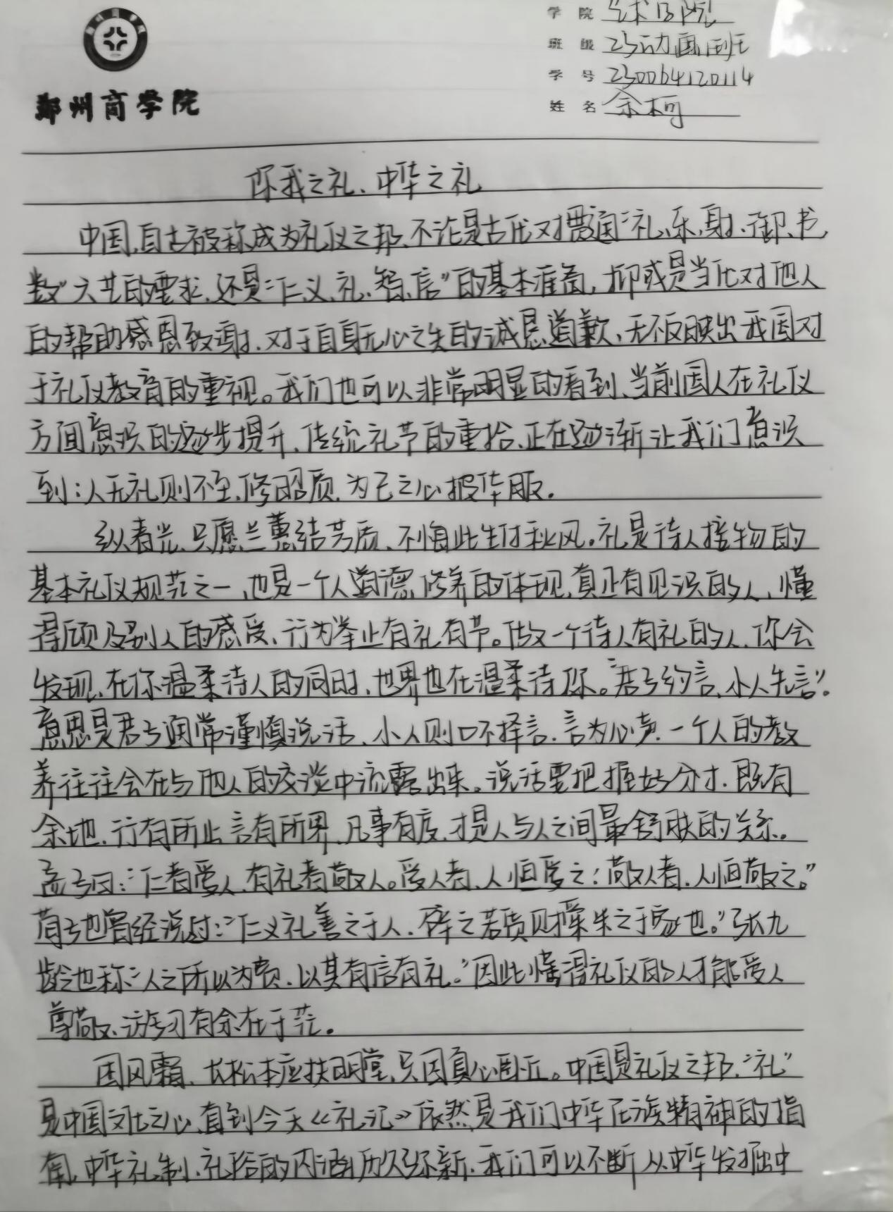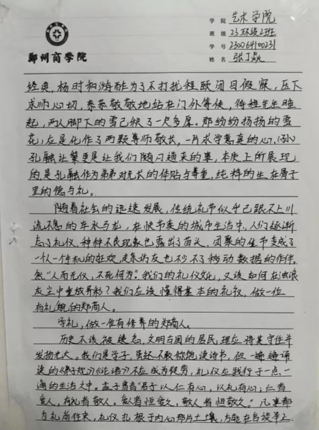 为丰富beat365大学生课外文化生活,增强大学生礼仪素养,丰富社交礼仪知识储备,引导每一位同学“知礼、懂礼、学礼”,艺术学院特举办“知礼、学礼、懂礼”主题征文活动,以展现艺术学院学子学习文明礼仪的优秀风采。