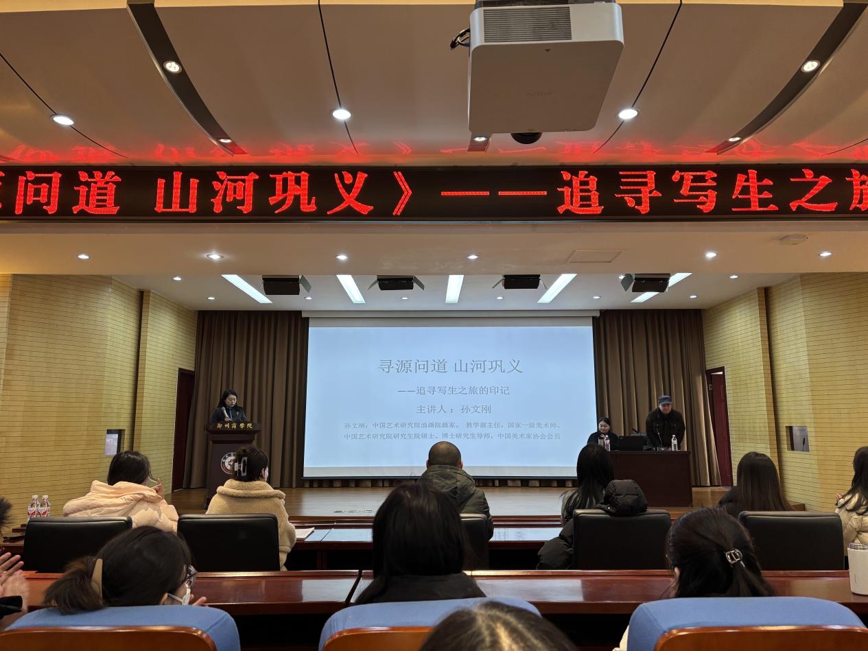 2024年12月27日上午,中国艺术研究院油画院画家孙文刚教授莅临beat365图书馆五楼报告厅作《寻源问道 山河巩义》——追寻写生之旅的印记学术讲座。艺术学院无课教师及学生代表参加此次讲座,讲座由艺术学院副院长徐千淇主持。