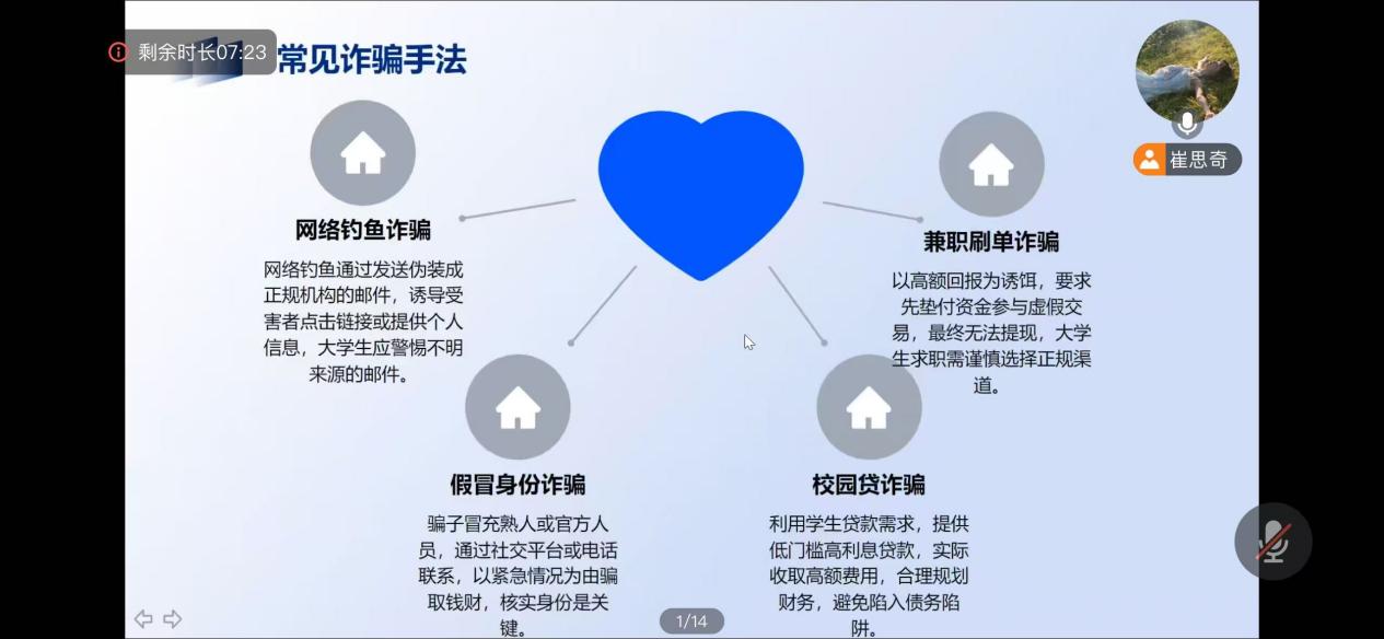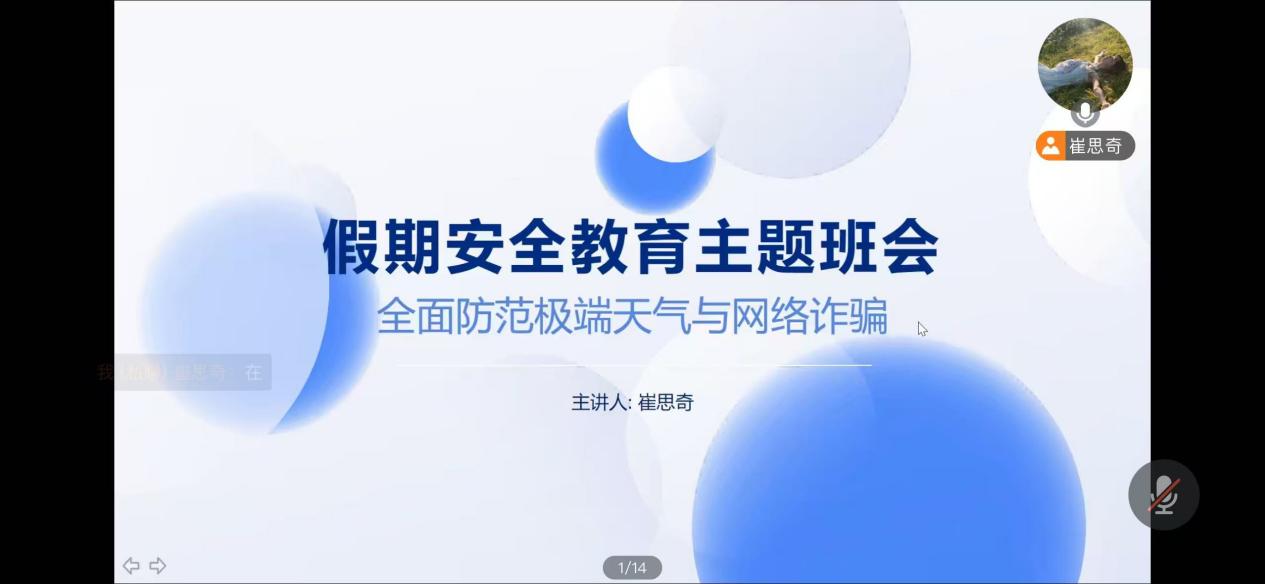 为切实增强学生的假期安全防范意识,确保同学们可以度过一个安全、愉快、健康的假期。艺术学院各年级辅导员老师组织各班学生召开假期安全教育主题班会。此次班会旨在通过多种多样的形式给学生做好假期极端天气防范、消防安全、饮食安全、交通安全、预防电信网络诈骗、文明上网等安全教育。