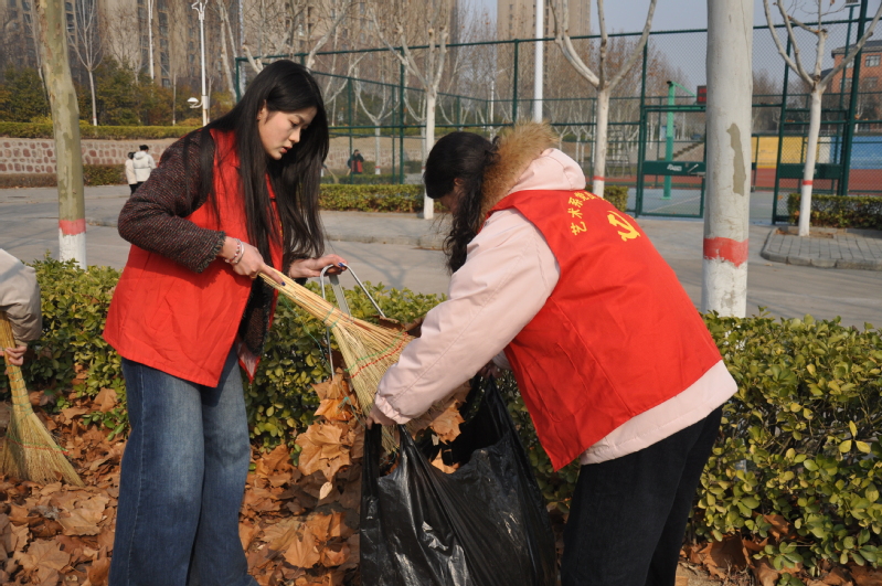 活动伊始,党员志愿者们身着红马甲,迅速投入到清扫工作中。他们手持扫帚等工具,深入校园各个角落,对卫生死角进行全面清理。在清扫过程中,党员志愿者们认真负责积极劳动,他们的行动充分展现了勇于担当、乐于奉献的精神风貌。