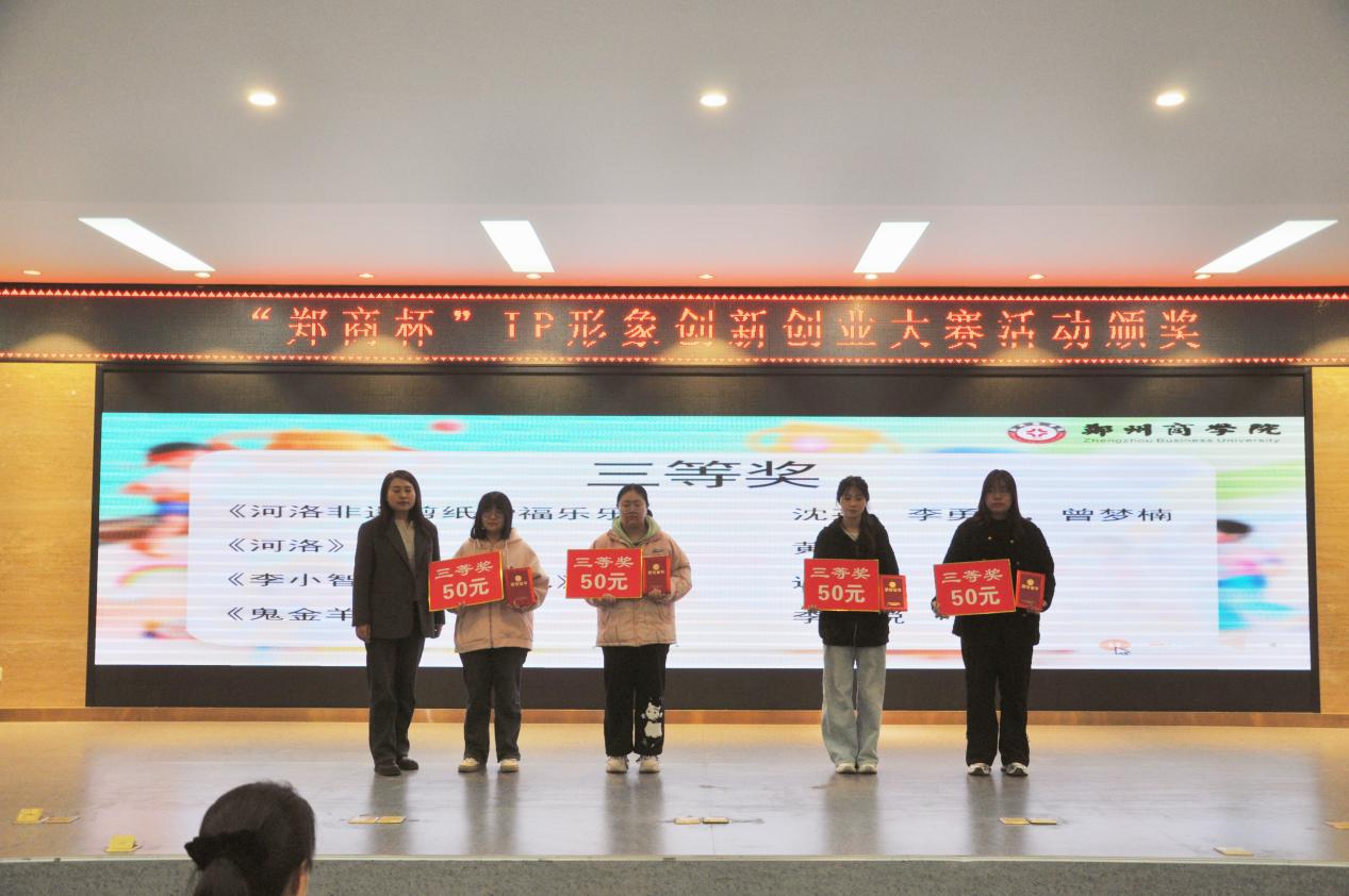 此次大赛设有巩义非遗、郑商校园、自命题和“画廉政心”廉政文化四项主题,主要引导学生在创作中立足地域文化,服务地区、开拓市场视野。经过专家组评审,共有14件优秀作品脱颖而出。颁奖典礼上,获奖学生依次上台领奖,与领导合影留念。这些获奖作品从文化性、审美性、市场潜力、展示效果等多个维度,充分展现了学生扎实的专业功底与创新实践能力。