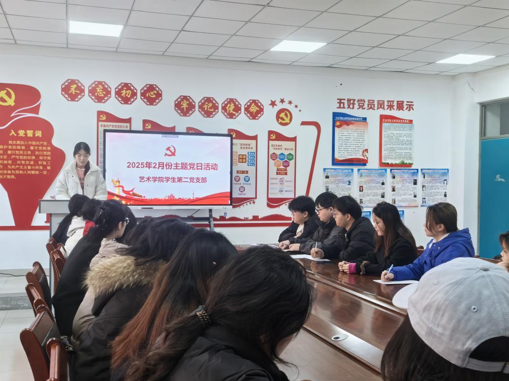 我院学生第一、第二、第六党支部联合于2月26日在艺术大楼党团活动室召开2月份“踔厉奋发担使命,勇毅前行开新局”主题党日活动。全体党员共同学习了习近平总书记在二十届中央纪委四次全会上发表的重要讲话精神和习近平总书记重要文章《健全全面从严治党体系》,党员们就学习内容展开讨论并分享心得体会。通过交流,全体党员纷纷表示要以清醒的头脑坚决抵制各种诱惑和腐败思想的侵蚀,牢记党员身份和教师职责,以实际行动维护党员的纯洁性和先进性。