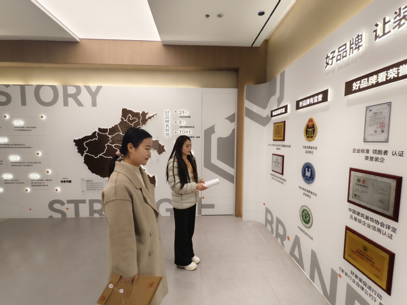 在郑州有家装饰工程有限公司余总的热情接待下,周老师、扈老师一行首先参观了公司的设计部门。设计师们正忙碌地与客户沟通,绘制着一个个充满创意与个性的设计方案。参观者被这里浓厚的艺术氛围所吸引,纷纷驻足欣赏,不时与设计师们交流心得。随后,来到了公司的材料展厅。这里陈列着各式各样的装修材料,从地板、瓷砖到墙面涂料,每一款材料都经过精心挑选,确保了装修品质。有家装饰的工作人员详细介绍了材料的来源、特点以及环保性能,让参观者对装修材料有了更加深入的了解。最让印象深刻的是有家装饰的施工工艺展示区。在这里,参观者亲眼目睹了装修工人们精湛的手艺和严谨的施工流程。从水电改造到墙面处理,再到家具安装,每一步都体现了有家装饰对细节的极致追求。在参观过程中,有家装饰的负责人还向老师们介绍了公司的服务理念和发展规划。他表示,有家装饰始终坚持以客户为中心,致力于为客户提供高品质、个性化的家装服务。未来,公司将继续加大研发投入,推动技术创新,不断提升自身的核心竞争力。