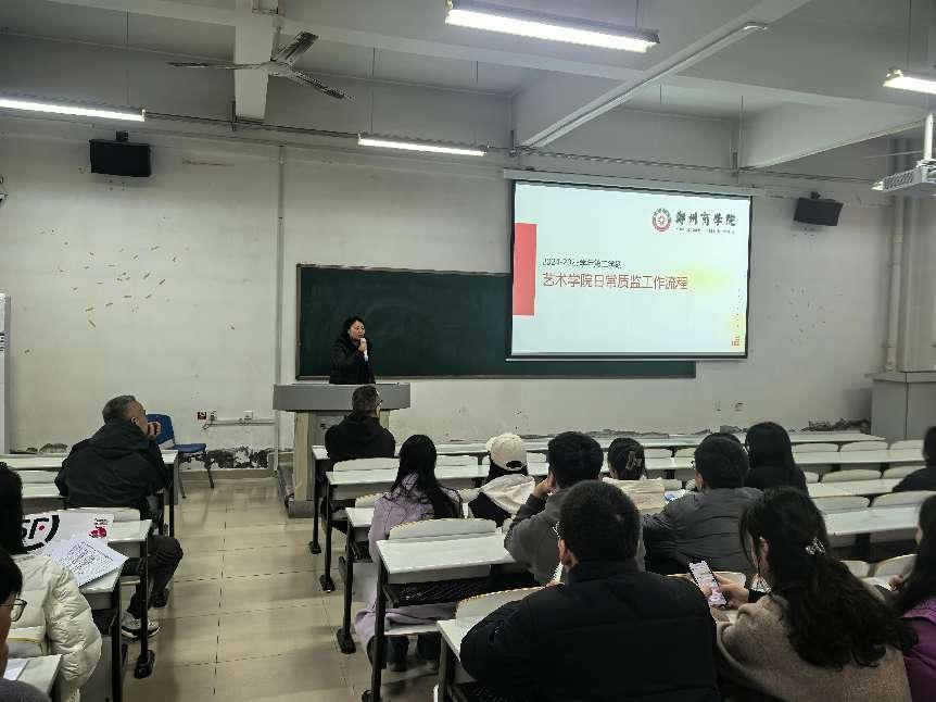 2025年3月6日下午,艺术学院在全体教师政治学习会议后开展学院质监工作要求及流程培训工作。学院质量监控联络员景芳芳老师从学校层面的要求、审核评估工作的要求以及学院对于质量监控工作的具体要求等几个方面对艺术学院质量监控工作进行了梳理,并着重为青年教师和银龄教师详细讲解了学校听课评价系统的使用流程。