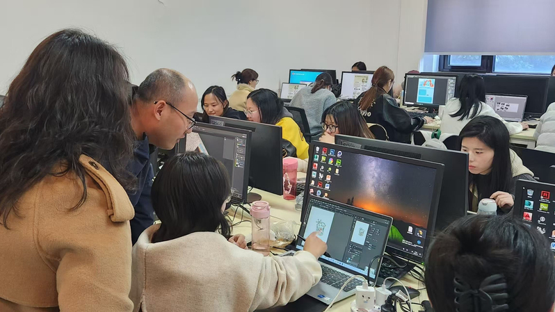 在此次走访过程中,张副局长一行深入学生课堂,细致了解学生参赛作品的创作理念与设计思路,从文化价值挖掘,工艺实现路径,以及市场应用前景等方面与学生展开深入探讨。张副局长高度评价学生作品展现出的创新思维和专业素养,充分肯定了指导教师严谨的指导理念和高标准的培养要求。并从文旅融合的角度对学生的设计作品做出了指导性的建议。
