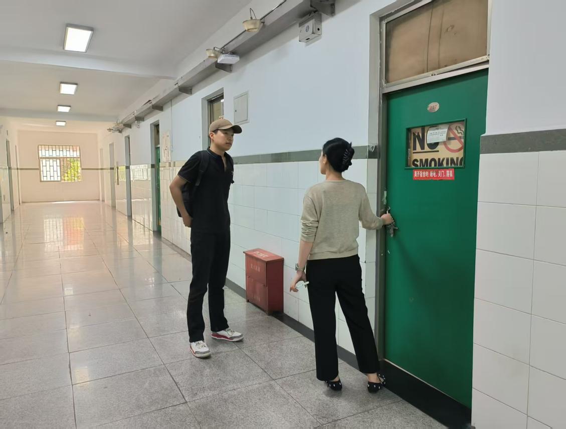 刘颖平始终坚定落实 “五深入” 工作方法,走进学生的学习与生活,守护校园的安全稳定。校园的各个角落,常能看到她奔波的身影,她定期前往宿舍、教室、自习室,仔细排查电线线路、基础设施,不放过任何安全隐患,为学生打造安心的学习生活环境。