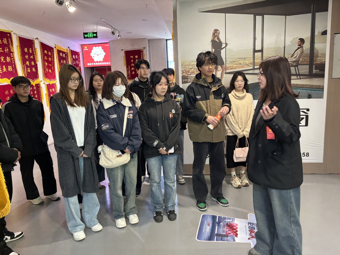 2025年3月21日,在艺术学院就业专员赵天龙、辅导员耿玺雯、朱牛牛老师的带领下,一群怀揣着对设计与装饰行业热情的2024级环境设计专业学生代表走进了颇具影响力的河南二月花建筑装饰工程有限公司巩义分公司。此次活动为初涉环境设计领域的新生们提供了一次近距离接触行业前沿的宝贵机会,让学生们深入了解装饰行业的实际运作,搭建起学校教育与企业实践之间的桥梁。