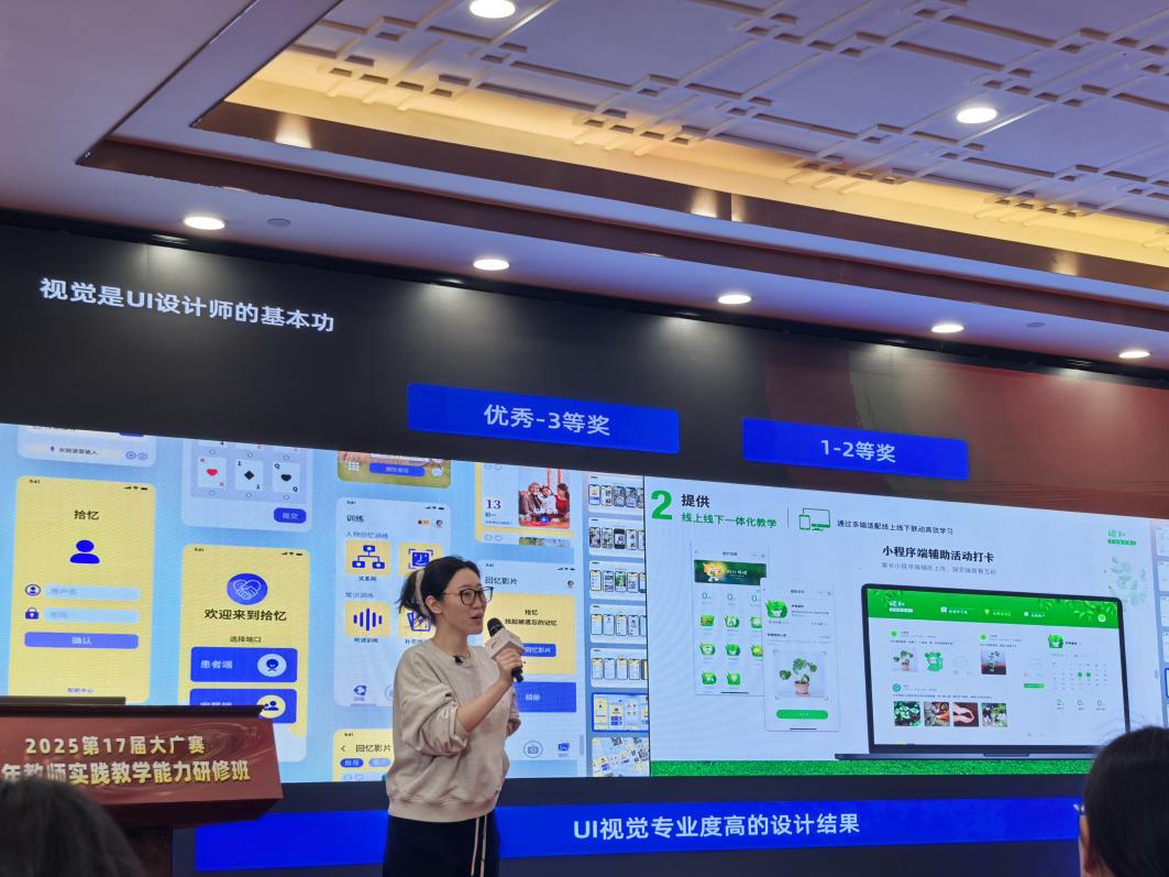 阿里巴巴银泰商业集团体验设计总监霍然老师分享了《大广赛UI设计作品筹备思路及技巧》霍然老师从大广赛企业命题与UI赛道设计切入,提出参赛者需深入解构命题背后的商业价值,以“用户痛点+品牌诉求”双维度挖掘创新点,强调UI设计需兼具视觉表现力与商业落地性。