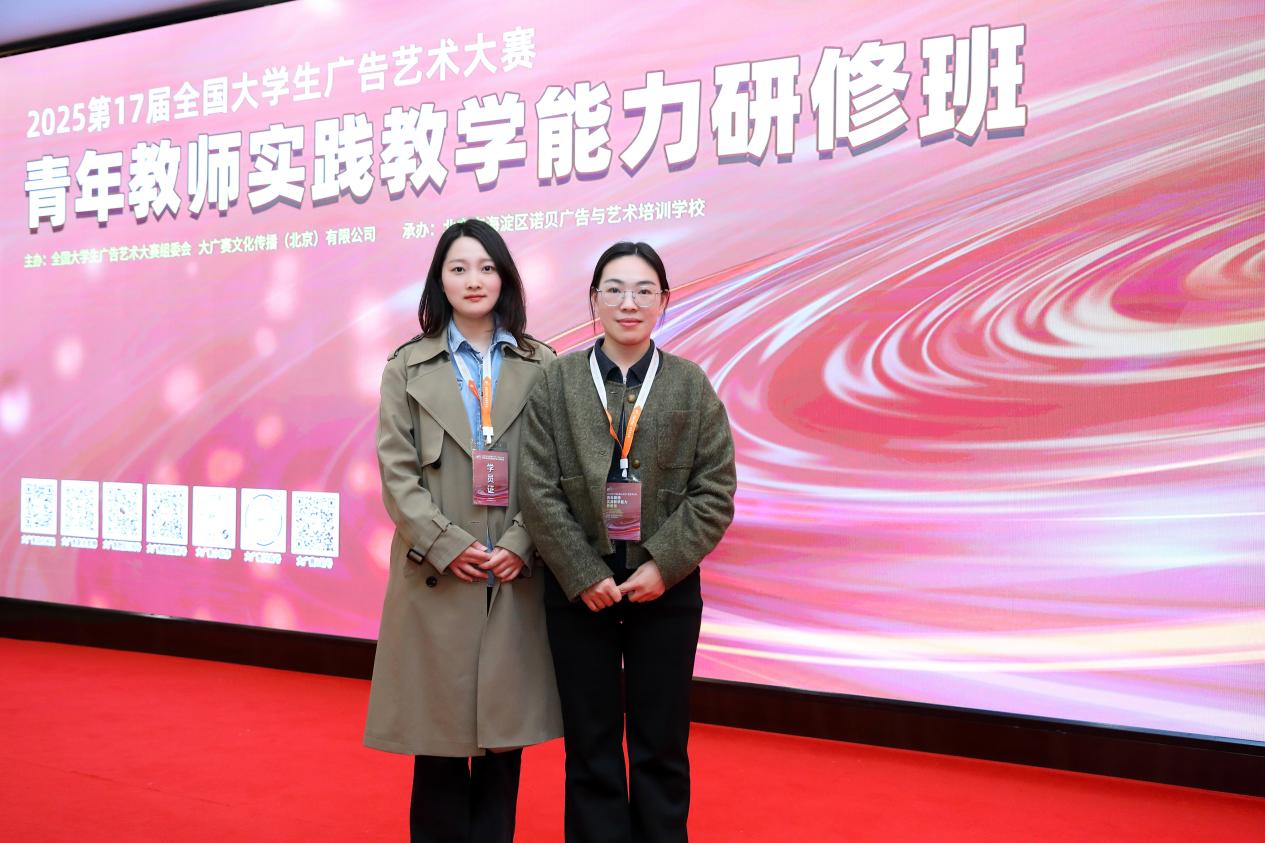 为深入贯彻国家关于加强高校青年教师实践教学能力培养的战略部署,进一步拓展青年教师对艺术课程设计与实践的视野,让学科竞赛全面深入第一课堂。我院视觉传达设计教研室青年教师张圆圆、任雪会于2025年3月28日——3月30日赴北京参加了为期3天的第17届全国大学生广告艺术大赛青年教师实践教学能力研修班。